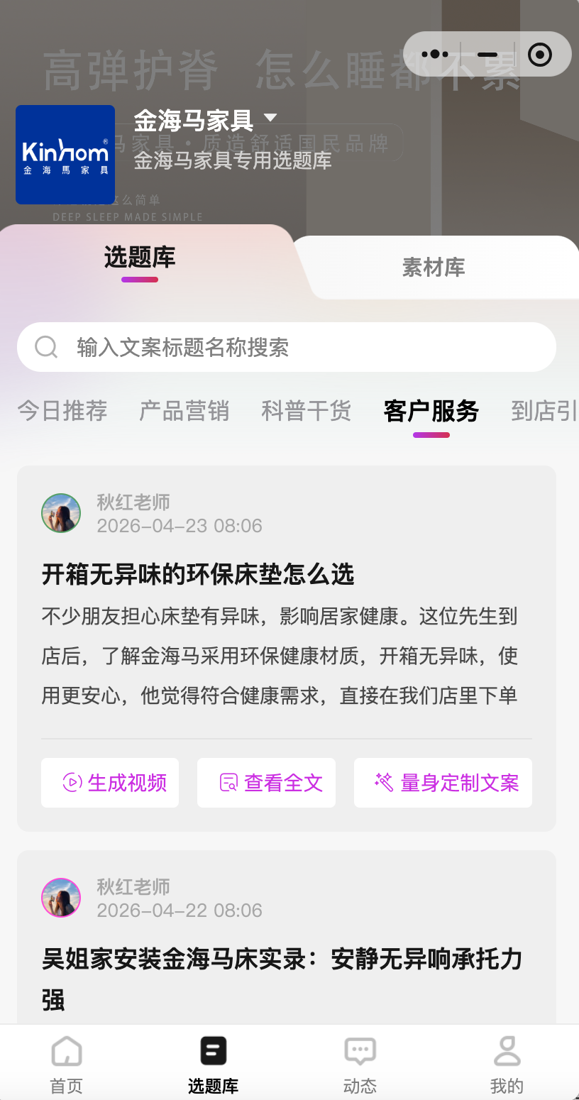 金海马家具深耕家居领域,全国门店及经销商布局广泛。当下同城新媒体已是家居主流获客渠道,品牌急需标准化、可复制的线上运营体系,提升门店引流转化能力。 为此,慧亚与金海马深度合作,依托菠萝家AI短视频系统+专属陪跑服务,从内容创作、账号运营到同城引流、客户留资全方位赋能,助力经销商低成本做好新媒体,开拓线上获客新路径。