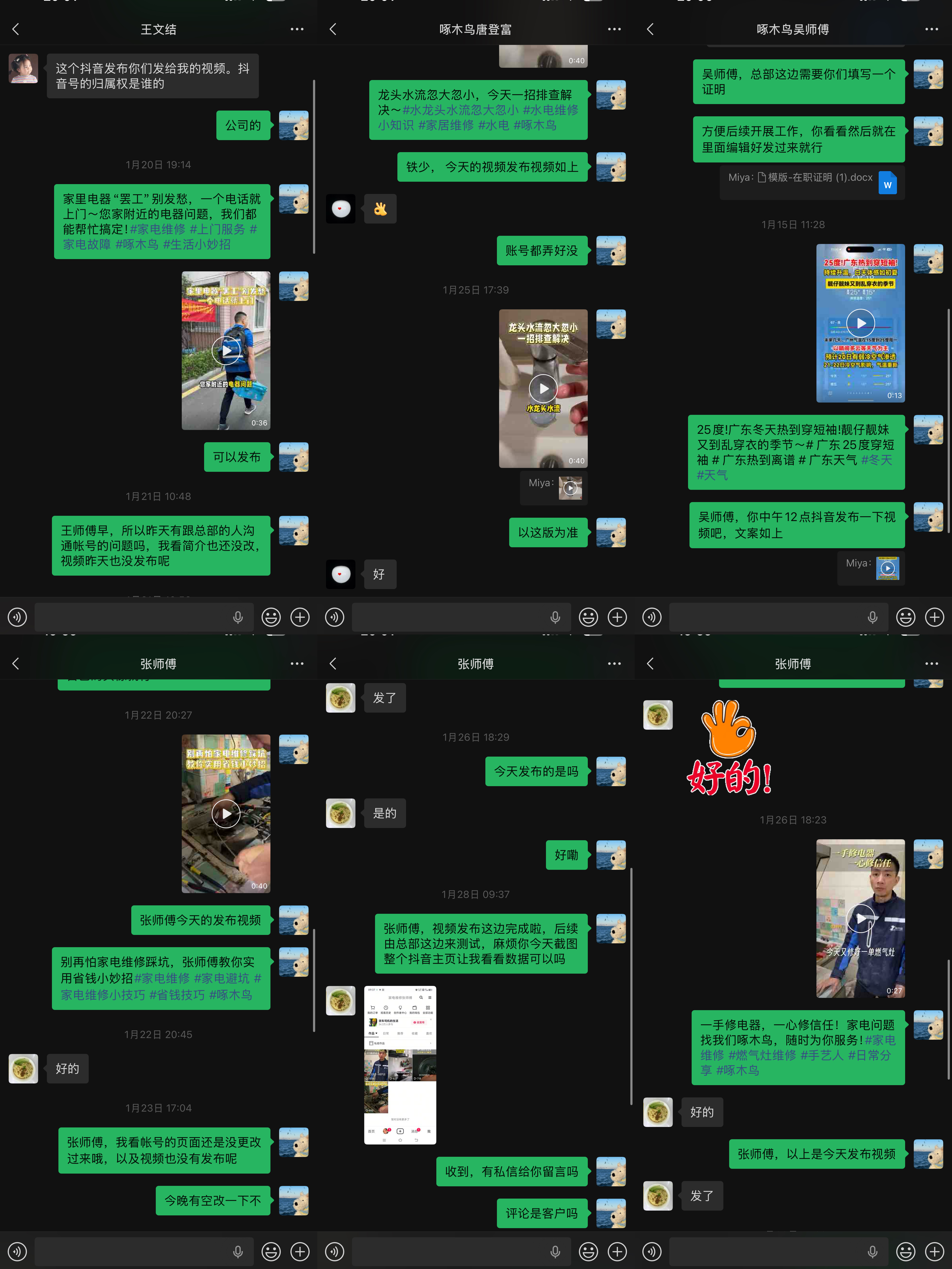 啄木鸟家庭维修作为国内家庭维修领域的领军品牌,深耕行业多年,凭借专业的技术团队、标准化的服务流程以及高效的响应机制,构建了覆盖全国的完善服务网络,业务范围全面覆盖家电维修、水电维修、家电清洗、管道疏通、墙面翻新等各类家庭维修服务场景,累计服务千万家庭用户,在行业内树立了良好的品牌口碑与标杆形象。随着新媒体传播浪潮的兴起,线上渠道已成为品牌提升影响力、拓展获客路径、强化终端粘性的核心阵地,但啄木鸟家庭维修在终端运营与品牌传播中逐渐面临诸多痛点:全国工程师数量庞大,终端传播口径不统一、内容产出杂乱,部分工程师缺乏专业运营能力,难以产出贴合品牌调性的优质内容;线上传播缺乏标准化体系,品牌形象传播不集中,获客效率有待提升;终端运营指导不足,工程师账号运营、内容创作等环节缺乏专业支撑,难以最大化发挥终端传播价值。