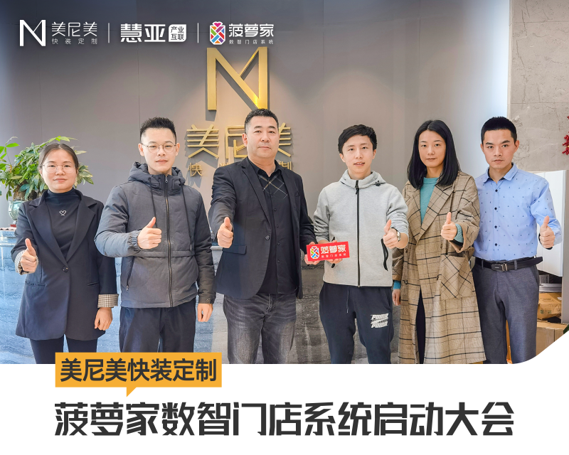 2021年12月,美尼美与菠萝家正式签订战略合作,在美尼美总部举办菠萝家数智门店系统启动大会。