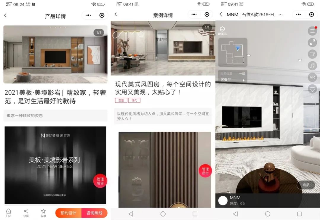 精美案例、实拍图册、VR库等多种素材形式,在线上门店集中展示产品特色及优势,消费者了解产品更直观,提升购物体验。